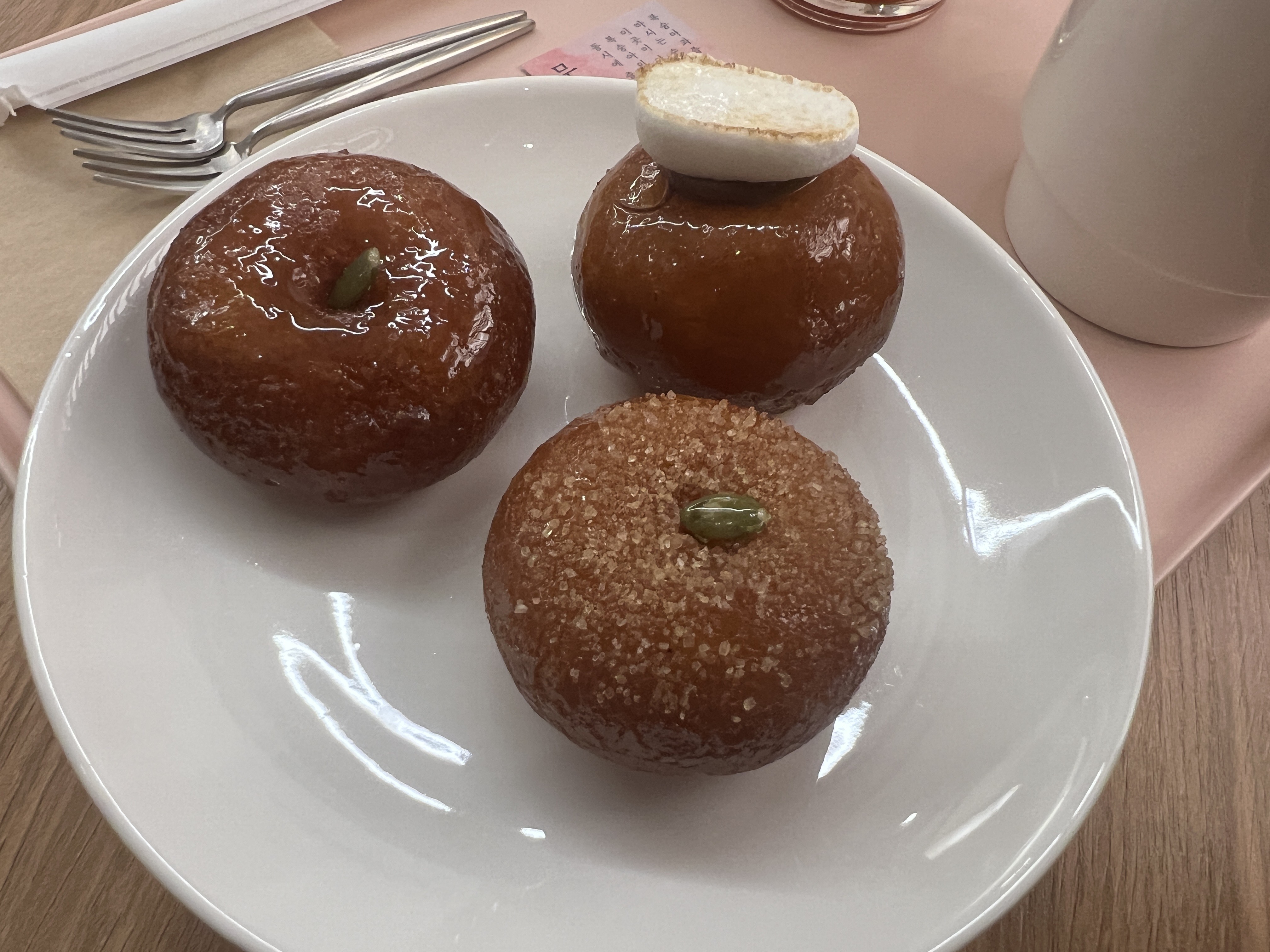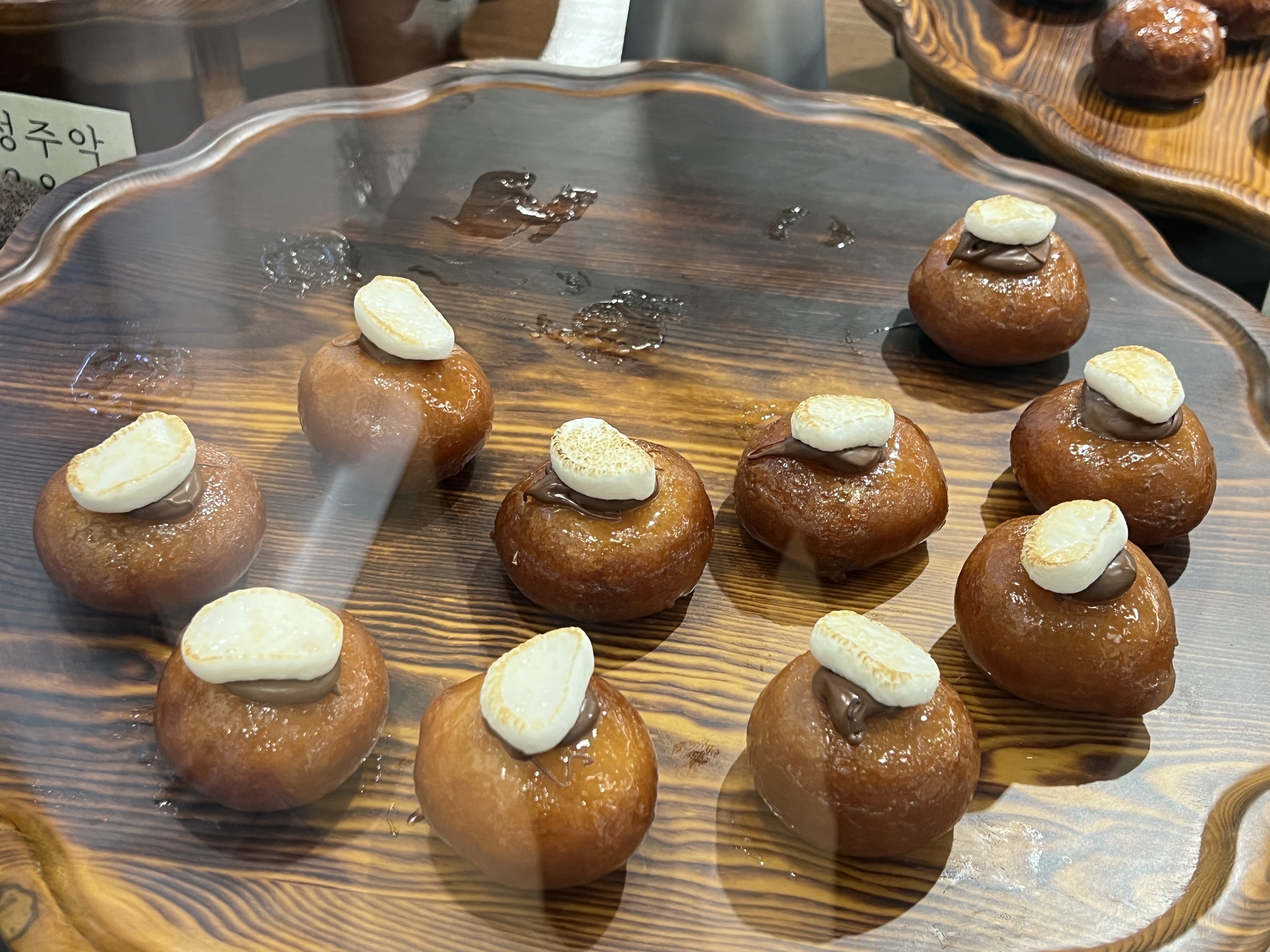 주악은 처음 먹어보는 디저트라 기본 하나 고명이 올라간 주악 2개를 주문했다.