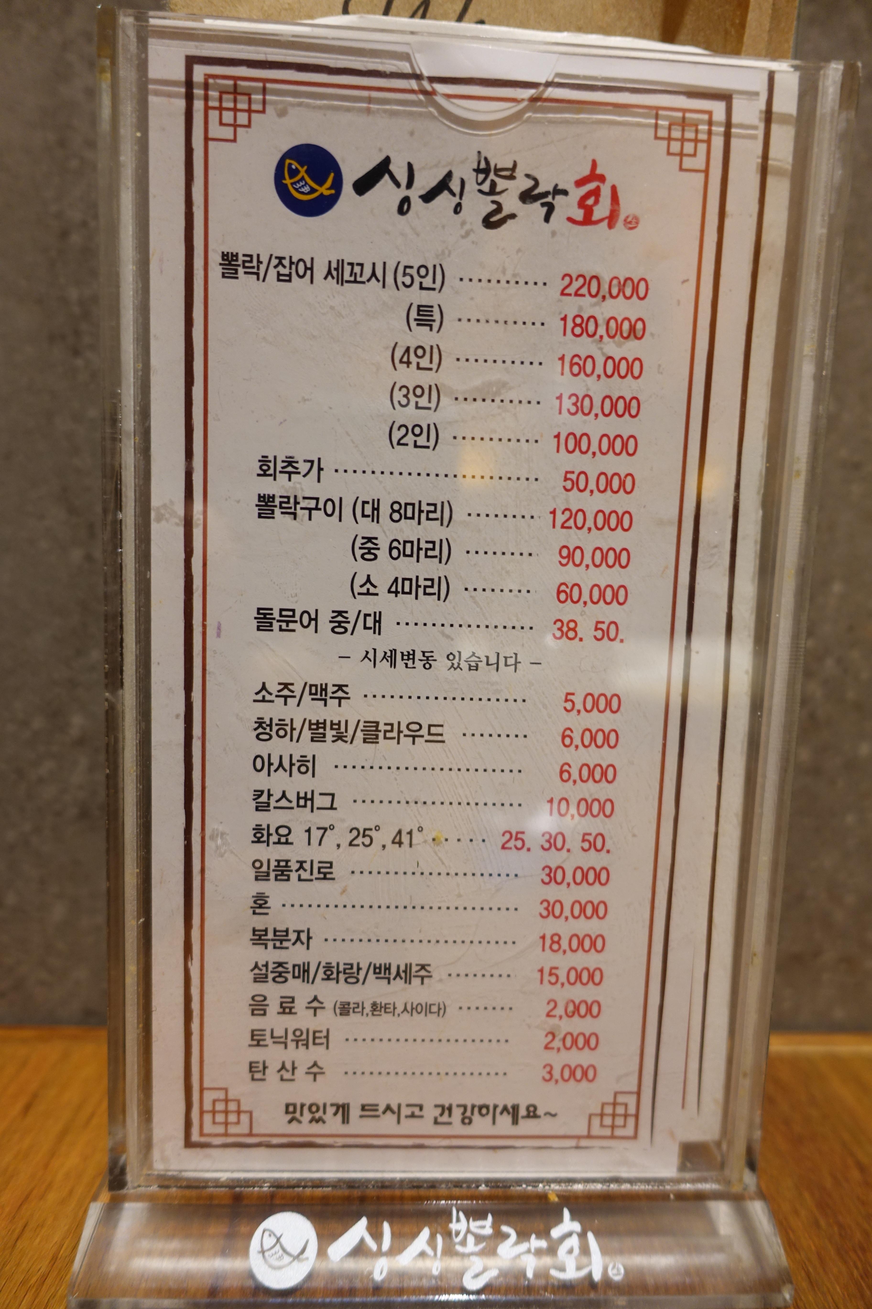 뽈락 세꼬시를 먹으러 찾아왔으니 고민할 것 없이 2인을 주문했다.