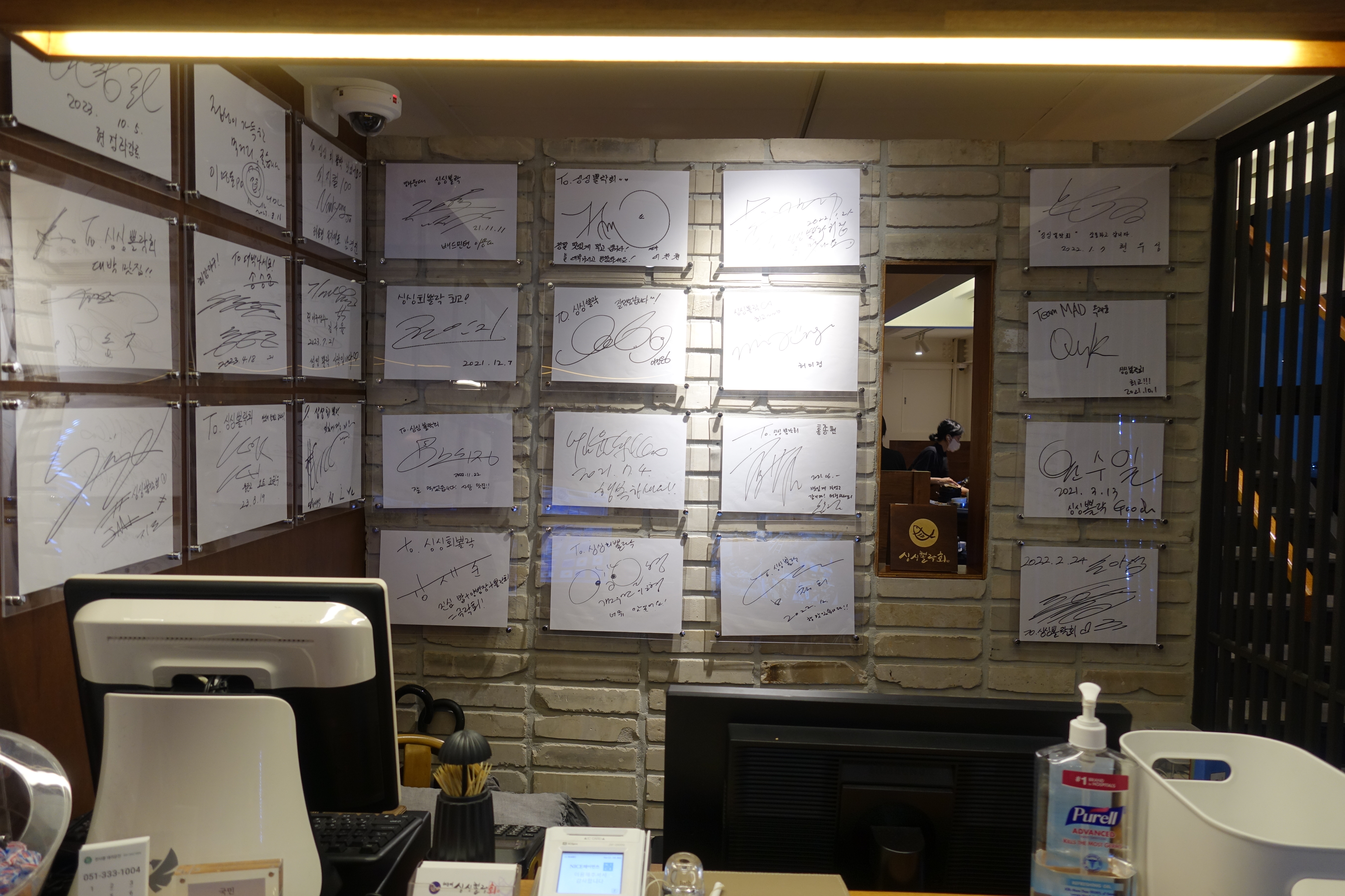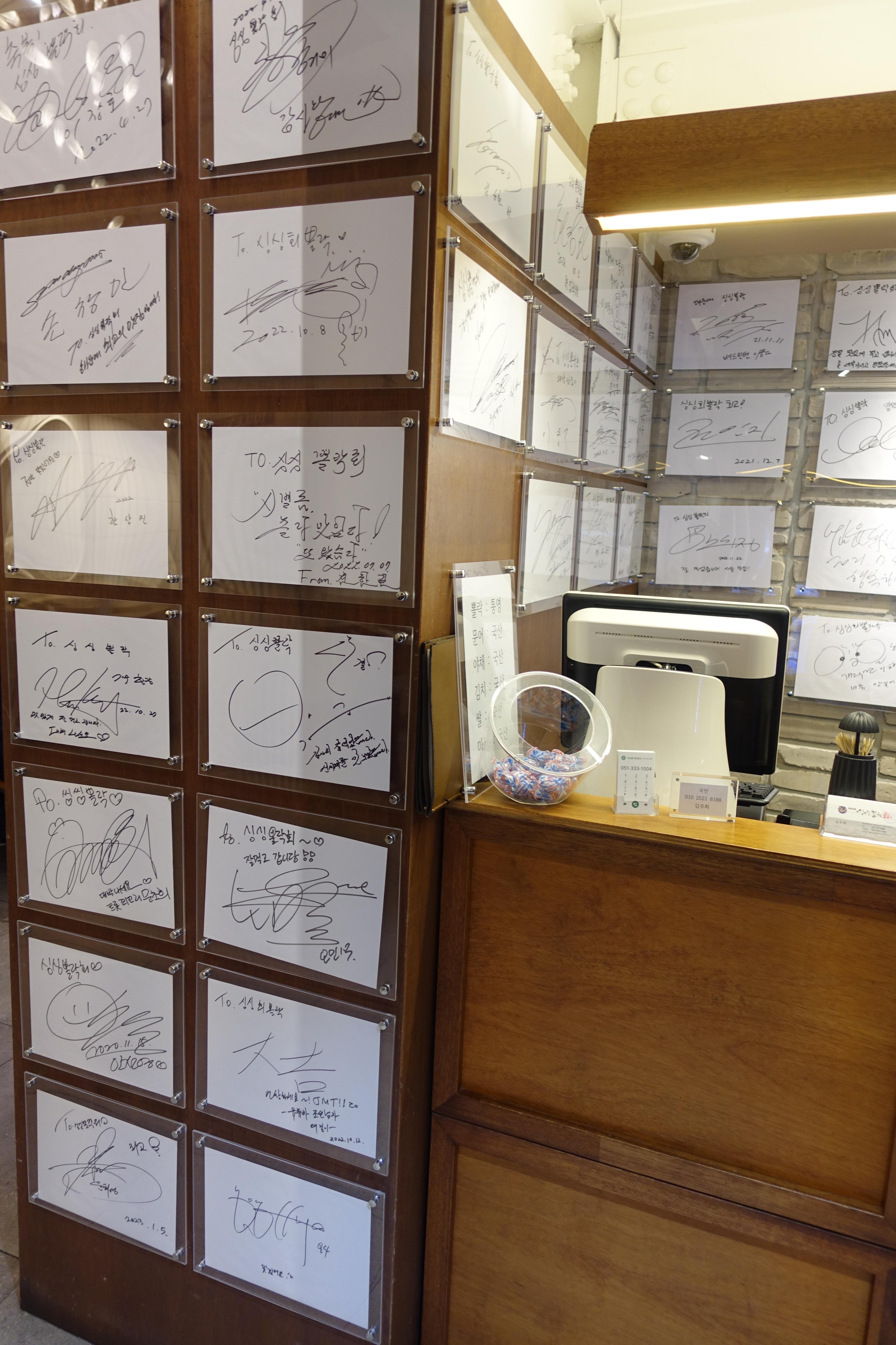 가게에 들어서자마자 카운터에서 맛집을 인증하는 유명인들의 싸인을 확인할 수 있었다.
