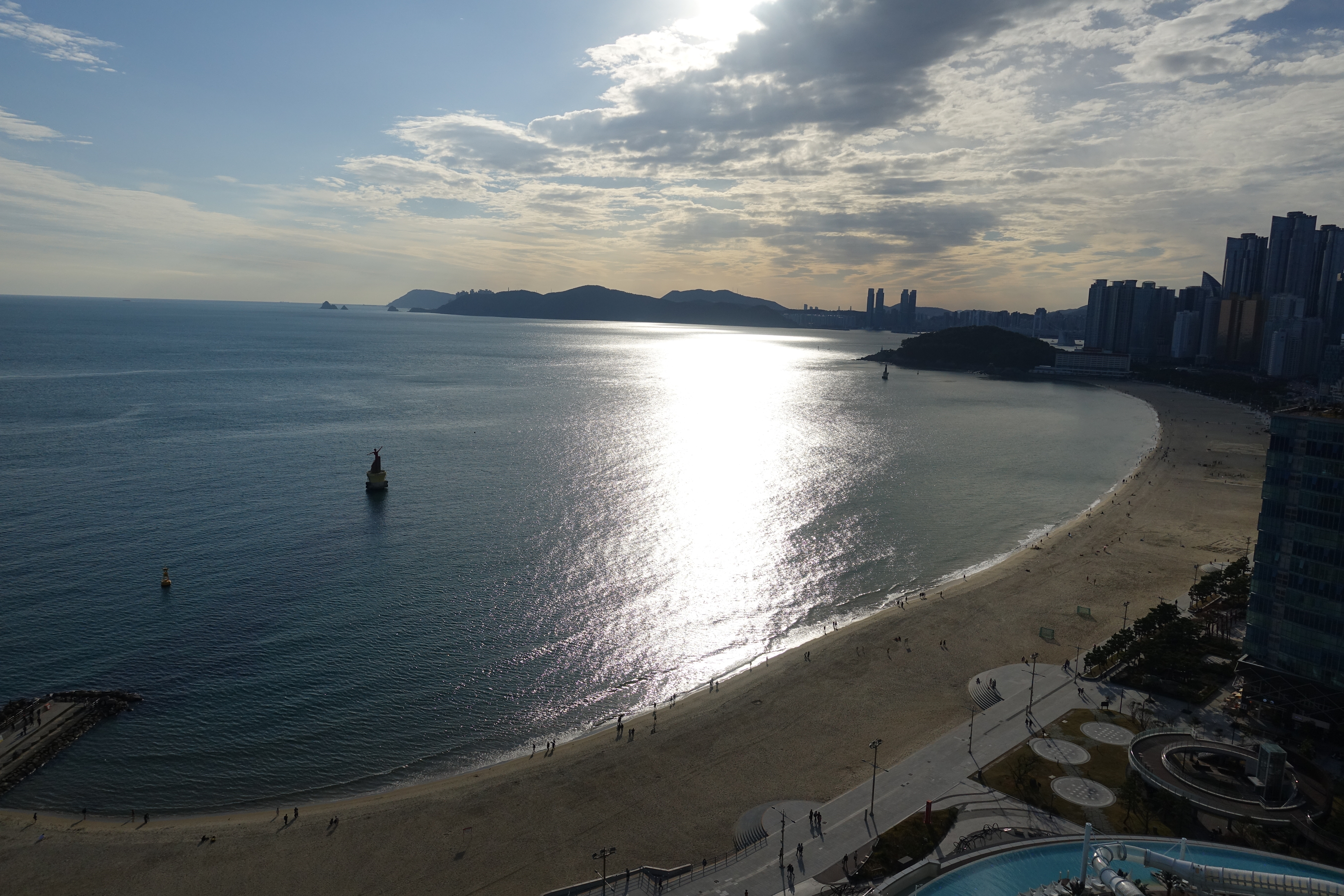 해운대 바다와 시내가 한눈에 들어오는 정말 멋진 풍경이다.