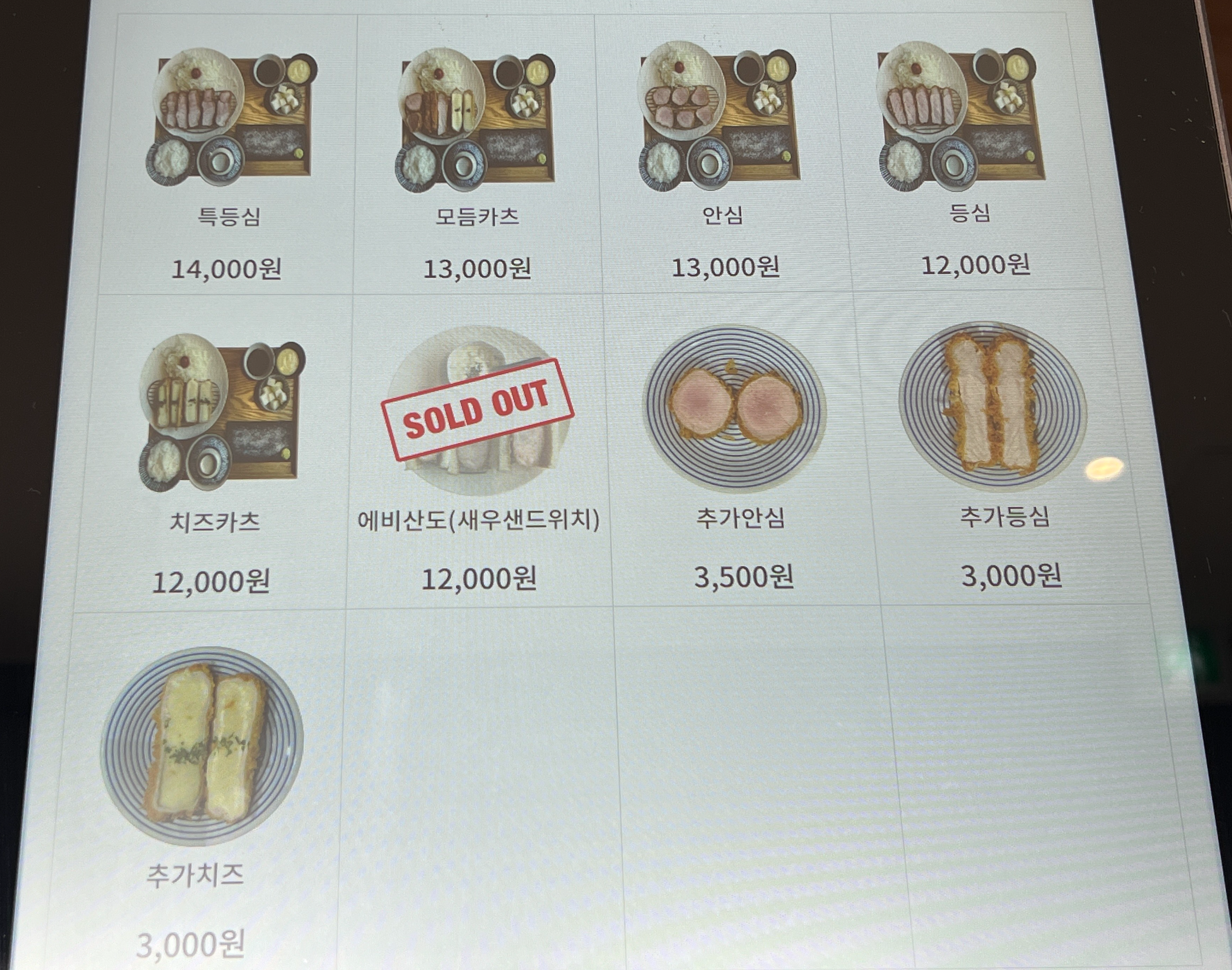 등심, 안심, 치즈 카츠가 포함되어 있었다.