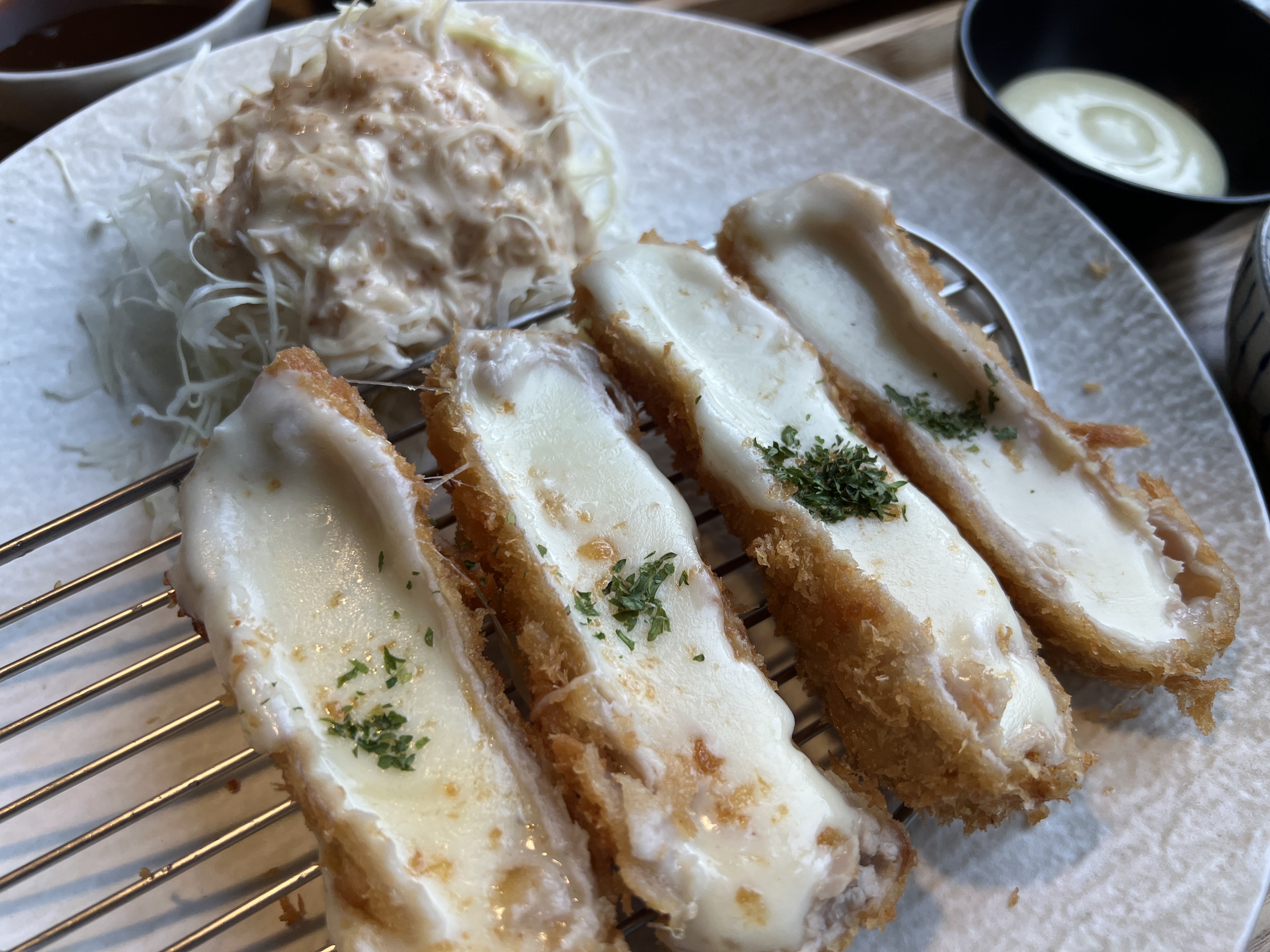 치즈카츠역시 치즈가 흘러 넘 칠 정도로 속이 꽉 차있다.