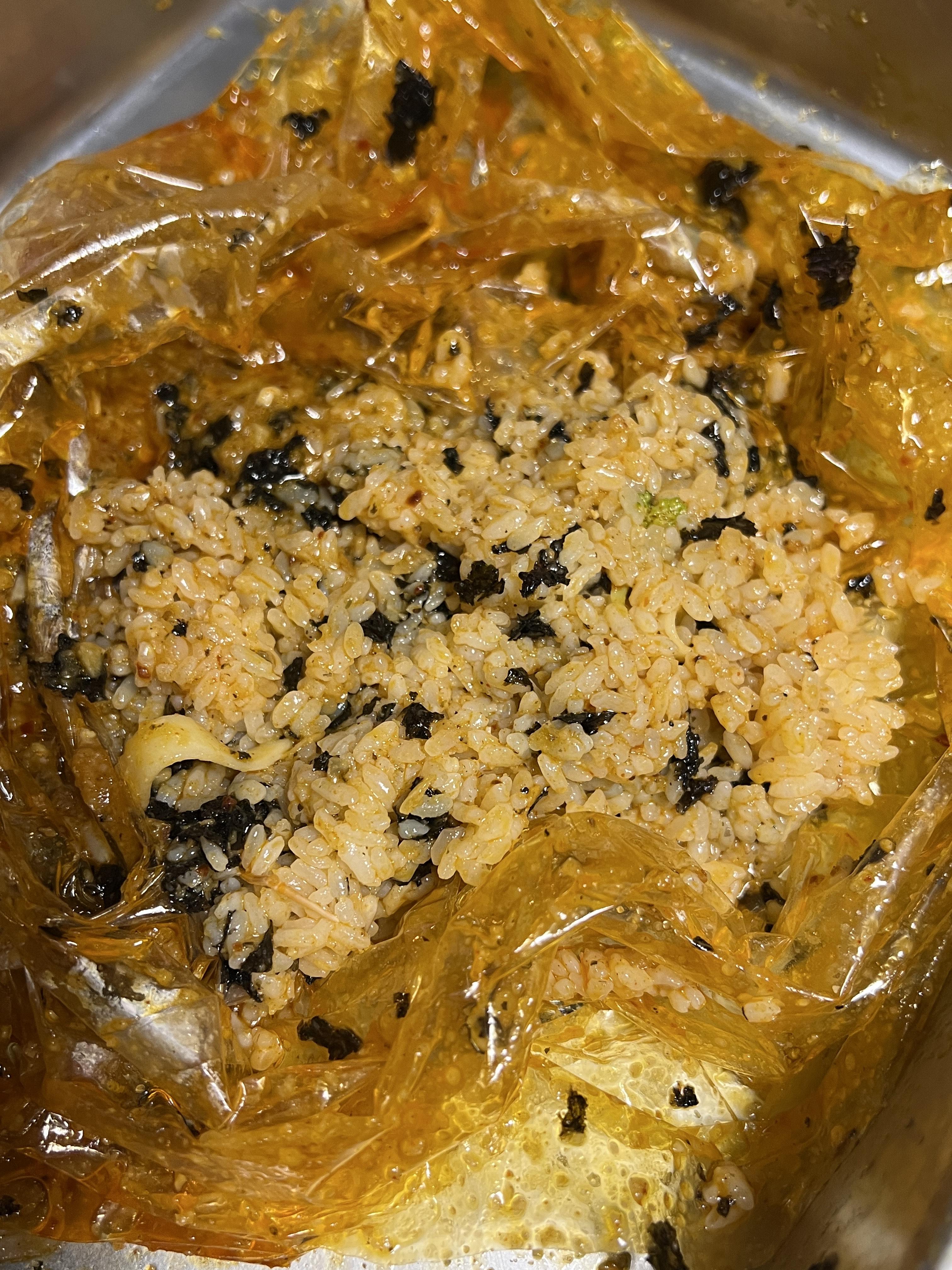 볶음밥이 해산물을 보일링한 소스에 밥을 비벼주는 거다 보니 이물질이 너무 많다.