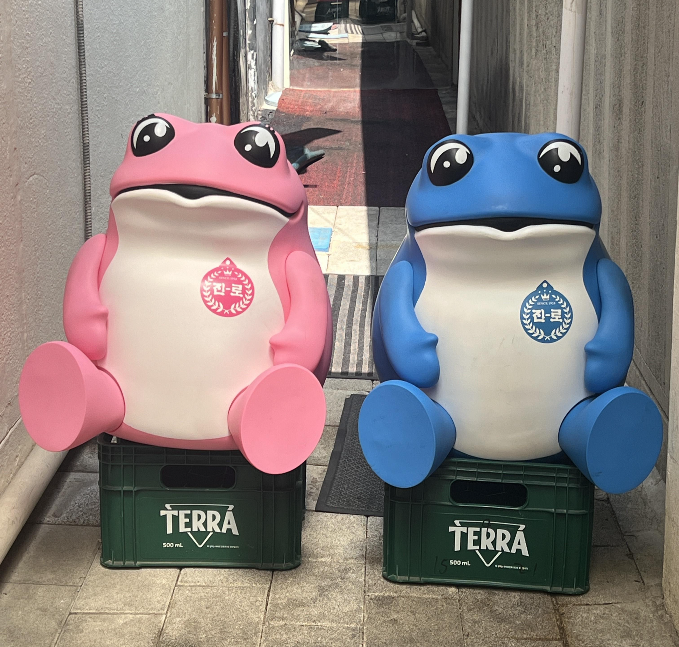 가게로 들어가는 골목 안쪽에 앉아있는 진로 캐릭터